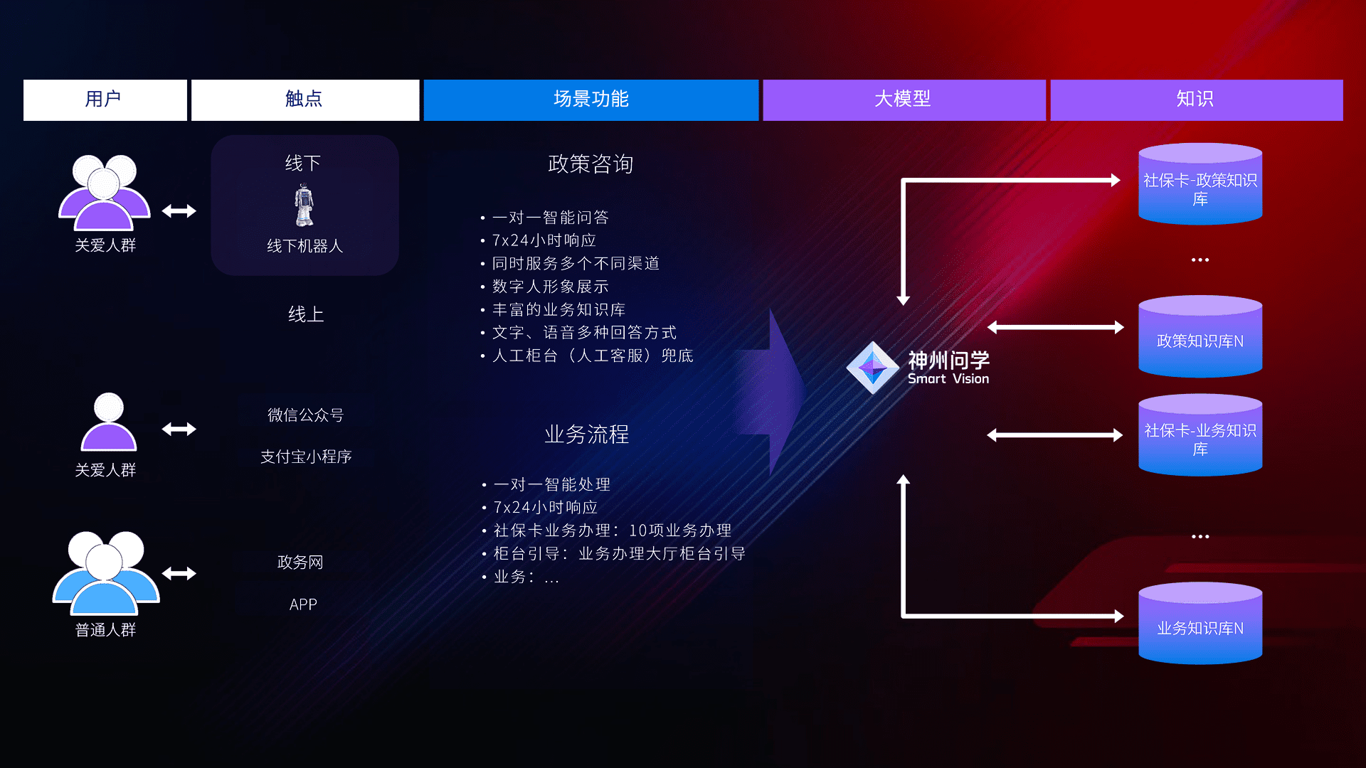 • 线上线下全覆盖:线上提供微信公众号、、、、支付宝小程序、、、政务网、、、app多种渠道,,,,与线下机器人形成完整服务体系。。。